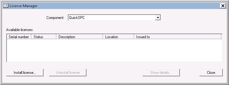 The License Manager is a utility that allows you to install, view and uninstall licenses for QuickOPC and other products which use the same licensing scheme. The License Manager is used: