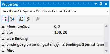 You can also invoke a full-featured binding editor, and configure all aspects on bindings – either on individual component (control), or for a whole container (form) at once: