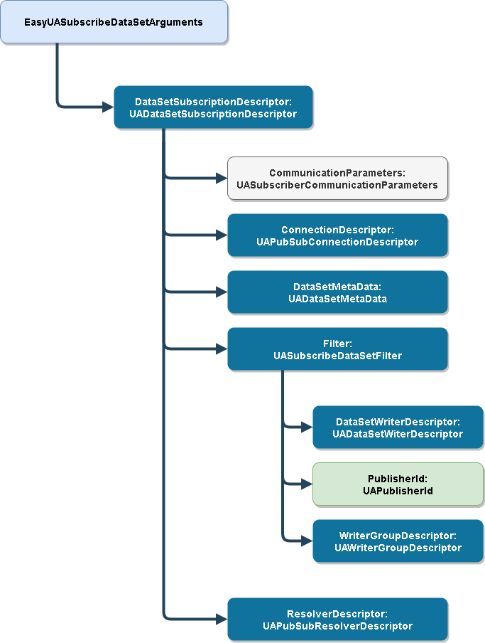 The main parts of the EasyUASubscribeDataSetArguments is the DataSetSubscriptionDescriptor: it describes the dataset(s) you want to subscribe to.