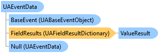 The UAEventData object contains details about an OPC UA event, i.e. the information that the OPC UA server sends with the event notification. Primarily, it has a FieldResults property, which is a dictionary containing results for each of the fields in the select clauses of the event filter. Each field results is a ValueResult object, i.e. it can either contain the actual value, or an error indication.