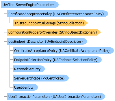 UAClientServerEngineParameters ObjectUACertificateAcceptancePolicy ObjectStringCollection CollectionStringObjectDictionary CollectionUAEndpointDescriptor ObjectUACertificateAcceptancePolicy ObjectUAEndpointSelectionPolicy ObjectNetworkSecurity ObjectPkiCertificate ObjectUserIdentity ObjectUAUserInteractionParameters Object