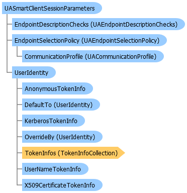 UASmartClientSessionParameters ObjectUAEndpointDescriptionChecks ObjectUAEndpointSelectionPolicy ObjectUACommunicationProfile ObjectUserIdentity ObjectAnonymousTokenInfo ObjectUserIdentity ObjectKerberosTokenInfo ObjectUserIdentity ObjectTokenInfoCollection CollectionUserNameTokenInfo ObjectX509CertificateTokenInfo Object