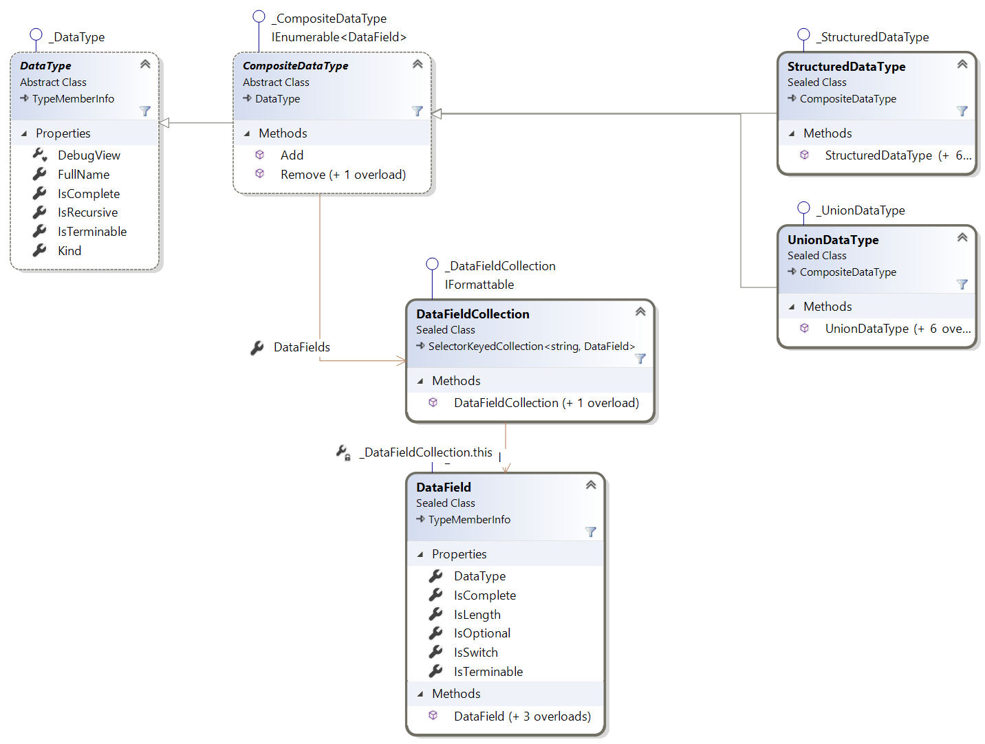 The DataFields Property contains a collection of data fields of the structured data type. Each such data field is an instance of DataField Class, and specifies: